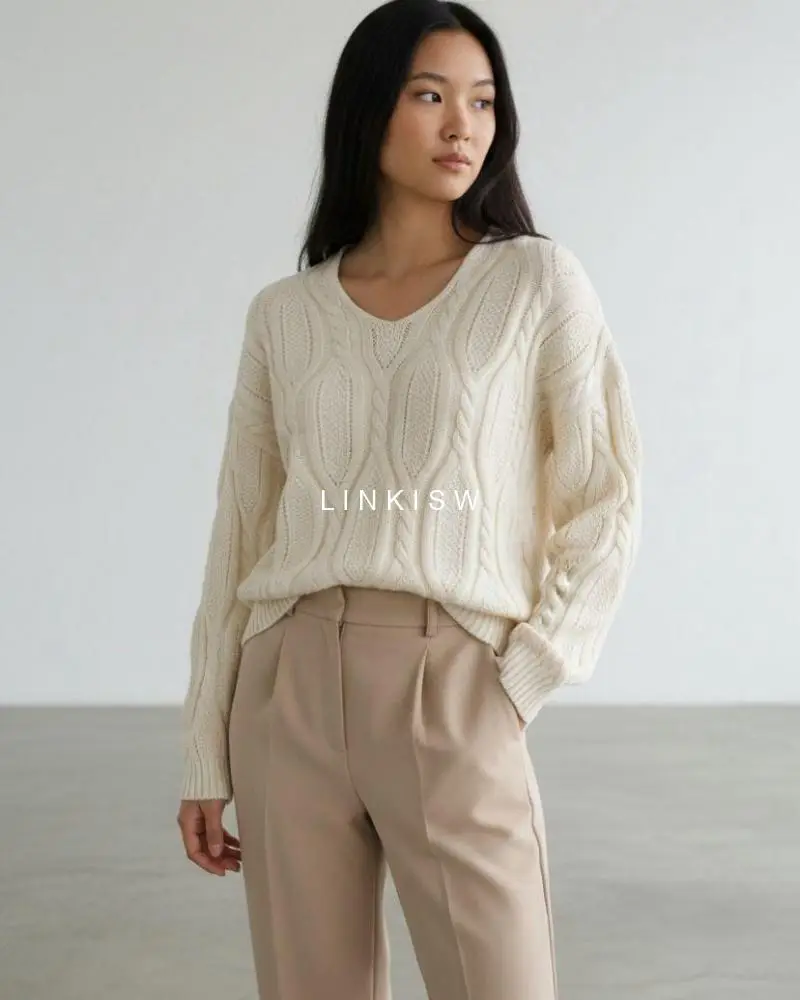 Suéter con detalle de encaje – Verde Suéter tejido de textura suave, con diseño clásico y delicado detalle de encaje en la espalda. Una prenda cómoda y versátil, ideal para combinar con jeans o pantalones y lograr un look casual con un toque elegante.